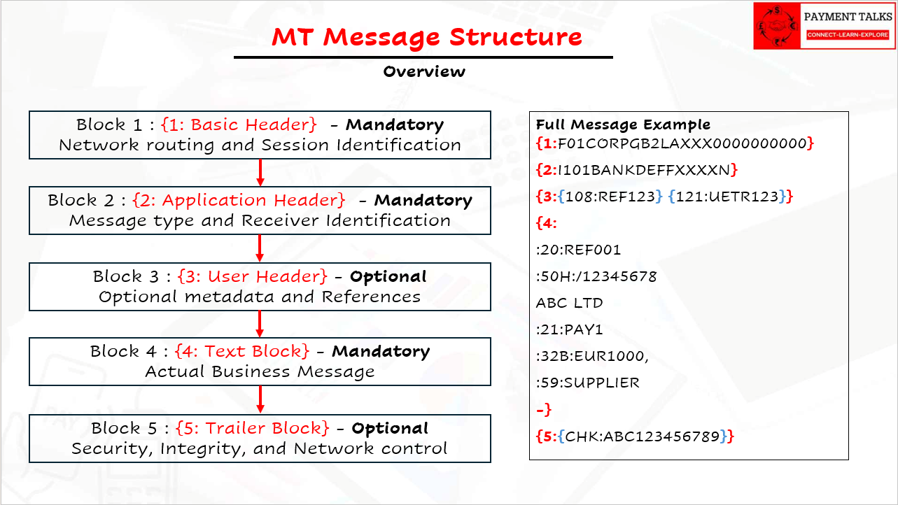 Explainer Videos Detailed Explanation of Agents and Parties in an ISO 20022 Message – Part 3 – Additional Agents – Explainer Video RAVI January 8, 2025 0 Read More Understanding Correspondent Banking: A Comprehensive Guide – Explainer Video RAVI January 15, 2025 0 Read More Detailed Explanation of Agents and Parties in an ISO 20022 Message – Part 2 – Payment Processing – Explainer Video RAVI January 8, 2025 0 Read More DPD & CPD – Part 1: Debit Party Derivation for Outgoing Payments – Explainer Video RAVI April 1, 2025 0 Read More What is a payment, its brief evolution and key elements in Domestic and International payments – Explainer Video RAVI December 31, 2024 0 Read More Detailed Explanation of Agents and Parties in an ISO 20022 Message – Part 1 – Payment Initiation – Explainer Video RAVI January 8, 2025 0 Read More DPD & CPD – Part 2: Debit Party Derivation for Incoming & Onward Payments – Explainer Video RAVI April 8, 2025 0 Read More Nostro, Mirror Nostro, Vostro, and Loro Accounts: A Comprehensive Guide – Explainer Video RAVI January 29, 2025 0 Read More Demystifying SWIFT Charge Codes: OUR/DEBT, BEN/CRED and SHA/SHAR – Explainer Video RAVI February 18, 2025 0 Read More DPD & CPD – Part 3: Credit Party Derivation for Outgoing Payments – Explainer Video RAVI April 14, 2025 0 Read More DPD & CPD – Part 4: Credit Party Derivation for Incoming and Onward Payments – Explainer Video RAVI April 22, 2025 0 Read More Payment Topics Understanding MT Field Formats | SWIFT MT Message Basics Explained RAVI February 22, 2026 0 Read More Overview of MT Message Blocks RAVI February 22, 2026 0 Read More PAIN.001 Structure Explained — Architecture, Bulk Logic, and Comparison with MT101 RAVI February 7, 2026 0 Read More What Is PAIN.001? | ISO 20022 Payment Initiation Flows Explained with Real Examples RAVI January 21, 2026 0 Read More Unstructured, Structured, and Hybrid Postal Addresses in ISO 20022 RAVI January 13, 2026 0 Read More ISO 20022 Business Application Header (BAH) – A Complete, Structured, and Practical Guide RAVI December 16, 2025 0 Read More Understanding the Building Blocks of ISO 20022 RAVI December 5, 2025 0 Read More Fundamentals of ISO20022 RAVI November 23, 2025 0 Read More Double-Entry Accounting in Payments: The Foundation of Financial Integrity in Banking RAVI November 15, 2025 0 Read More Payment Life Cycle – Banking Transaction RAVI November 8, 2025 0 Read More Debit – Credit Party Derivation for Incoming, Onward and Outgoing Payments in Payment Engine RAVI April 1, 2025 0 Read More Understanding Charge Codes in SWIFT Payments: OUR/DEBT, BEN/CRED, and SHA/SHAR RAVI February 18, 2025 0 Read More Nostro, Mirror Nostro, Vostro, and Loro Accounts: A Comprehensive Guide RAVI January 29, 2025 0 Read More Understanding Correspondent Banking: A Comprehensive Guide RAVI January 15, 2025 0 Read More Detailed Explanation of ALL Agents and Parties involved in an ISO Payment Message RAVI January 5, 2025 0 Read More What is a payment, its brief evolution and key elements in domestic and international payments. RAVI December 31, 2024 0 Read More Domestic Payment Processing Methods RAVI December 4, 2024 0 Read More