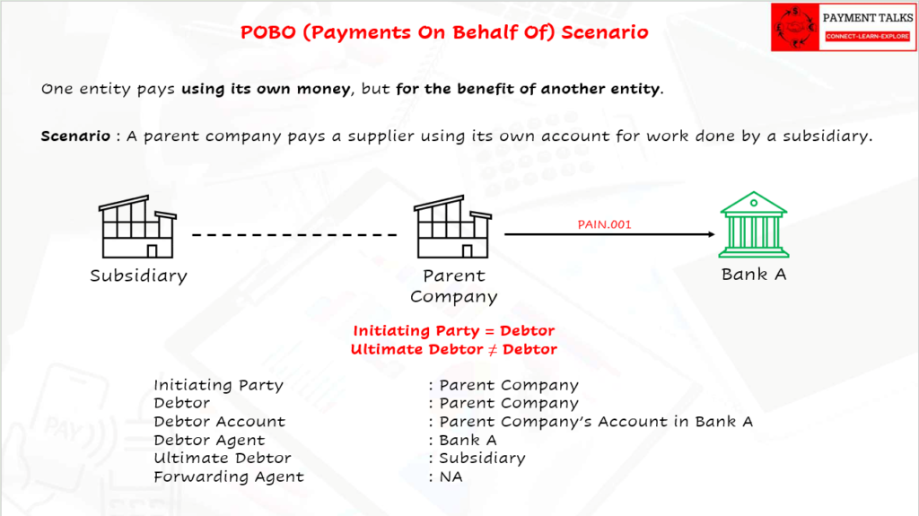 Banks often validate authority agreements or Tripartite agreements behind the scenes for this model — even though ISO messages don’t show contracts.