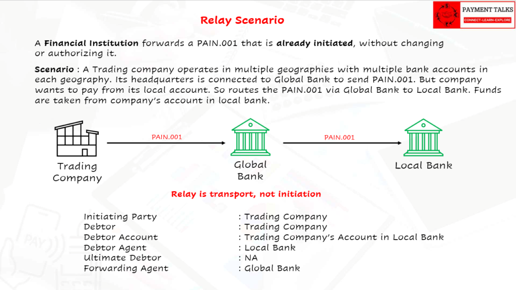 - Forwarding Agent must be a Financial Institution (that’s why PAIN.001 is called Interbank PAIN.001)